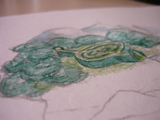 To člověk nejdřív vytáhne zpola zapomenutou knížku Kreslení fantasy map, vezme do ruky tužku a zkusí si cvičně načrtnout základní obrys. Podle rad v knize přidá detaily, vybrousí pobřeží a doplní ostrůvky. Pak už zcela chaoticky, nepromyšleně a po svém pokračuje - prvotní linie hor, pohoří, náznak stínování. Vchody do hor. Řeky, které ani moc nepopírají gravitaci a logiku. Trosky městečka, osamělá stavení. Drak, samozřejmě, ten by neměl chybět. Moře. Jasně že tmavší znamená hlubší, což u pobřeží nedává úplně smysl, ale... když ty nové anilinky si o to vysloveně říkaly.